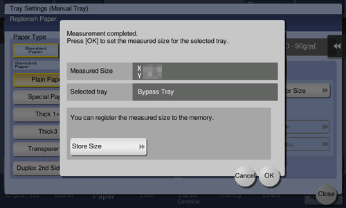 Measure the size of custom paper using the ADF or Original Glass. If you register the measured size in the memory, you can reduce the number of steps required to enter the size from the next time.