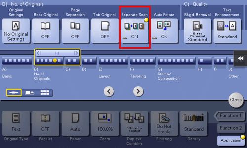 Tap [Application] - [No. of Originals] - [Separate Scan], and set to [ON].