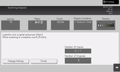 After all originals have been scanned, tap [Finish] and press the Start key.