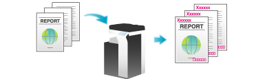 Text such as "PLEASE REPLY" and "DO NOT COPY" are printed on the first page or all pages. You can select the text to be added from the registered fix stamps and arbitrary registered stamps.
