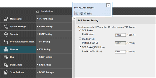 In the [Network] menu that appears after you log in to the administrator mode of Web Connection, you can use the popup help.