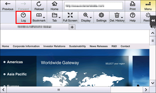 Tapping [Menu] - [Log] on the toolbar displays a list of pages displayed up till the current time.