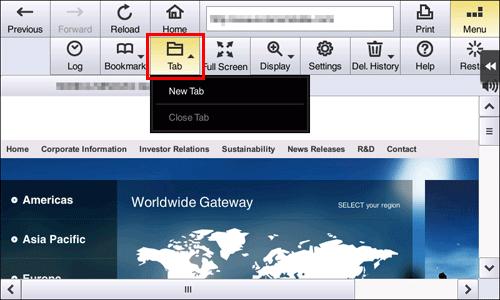 Select [Menu] - [Tab] on the toolbar to operate tabs.