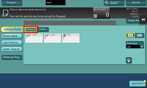 Tap [Address Book] - [Personal], and select a desired one of the destinations registered in My Address.