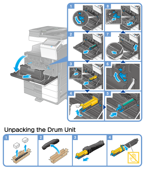 • After replacing a Drum Unit, be sure to clean the Print Head Glass. For details on how to clean the Print Head Glass, refer to Here.
