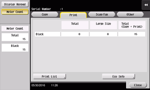[No. of Total Pages Output] | Allows you to check the total number of printed pages. |