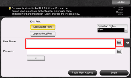 • To log in as a User Box administrator, select [User Box Administrator]. For details on the User Box administrator, refer to Here.