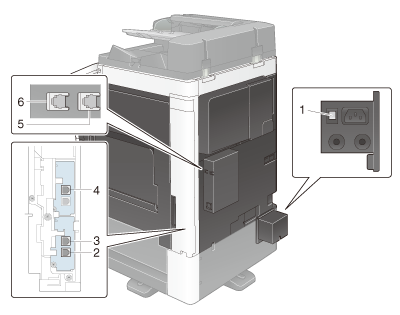 3 | Telephone Jack 1 (LINE PORT1) | Used to connect a general telephone subscriber line. Connect the cord to this connector when using only one telephone line. |
