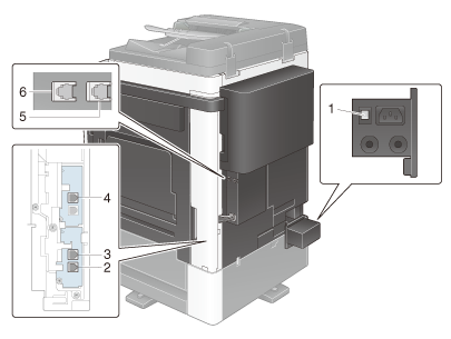 3 | Telephone Jack 1 (LINE PORT1) | Used to connect a general telephone subscriber line. Connect the cord to this connector when using only one telephone line. |