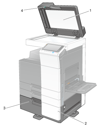 3 | Reverse Automatic Document Feeder DF-629 | Automatically feeds and scans originals by page. This unit also reverses and automatically scans 2-sided originals. This unit is referred to as ADF in the manual. |