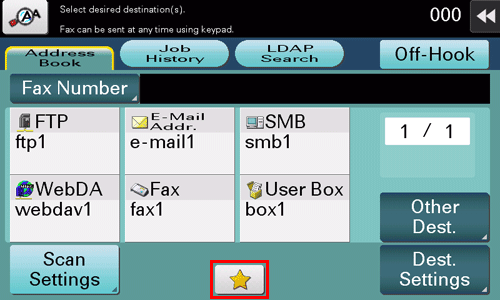 The scan/fax program must be registered on the normal screen in advance. For details on how to register, refer to Here.