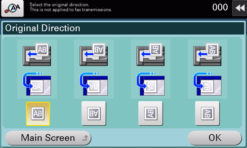 Tap [Scan Settings] - [Original Settings] - [Original Direction] to select the original loading direction.