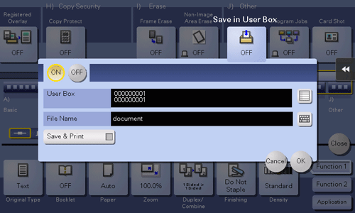 Save original images in the hard disk (user box) of this machine. You can also save an original in a user box and print at the same time.