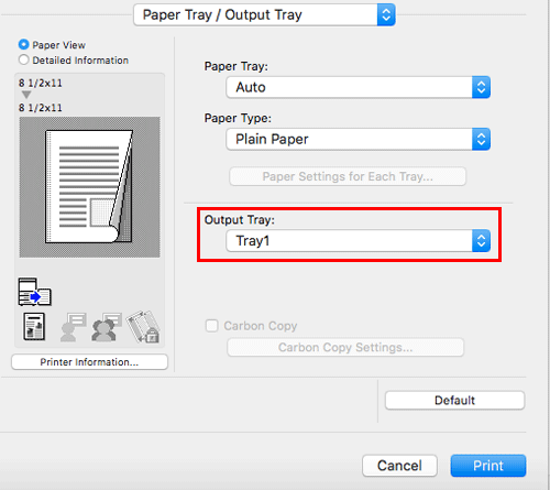 In [Output Tray:] in [Paper Tray / Output Tray], select the tray to which printed sheets are output.
