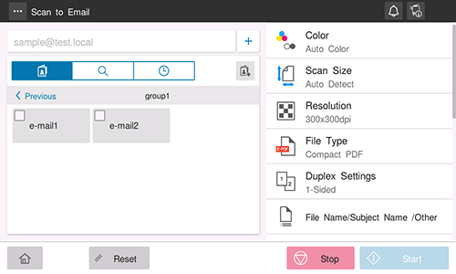 Tapping the Search tab () displays the destination search screen. If the LDAP server or the Active Directory of Windows Server is used for user management, you can search for (LDAP Search) destination information registered in the server and specify the desired destination.