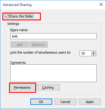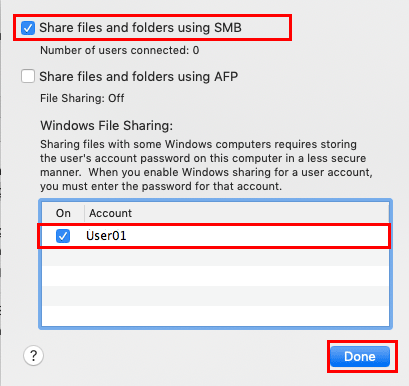 8. Click [Options], and select the [Share files and folders using SMB]. Then, select the log-in user name (displayed name) check box.