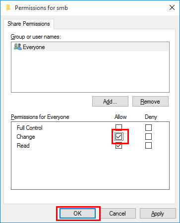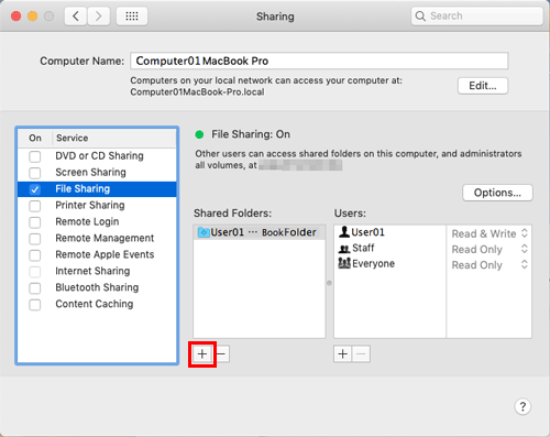 • Check that the user name you wrote down in a previous step is displayed and the access rights are set to [Read & Write].