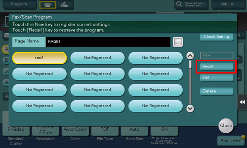 Program is a function to register a combination of frequently used option settings as a recall key. The program to be registered in scan/fax mode is referred to as a scan/fax program.