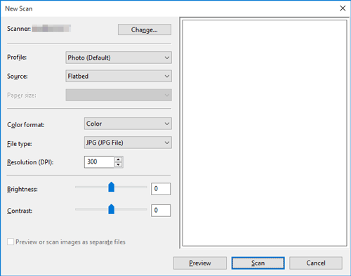 • If you select [Flatbed] in [Source], click [Preview] before saving data as a file, and check the image of the scanned original.