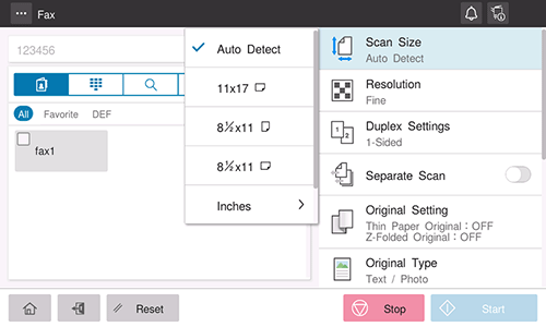 Even for an original with pages of different sizes, by using the ADF, you can scan data while detecting the size of each page. If the widths of the originals are the same, select [Same Width]. If the widths of the originals are different, select [Different Width].