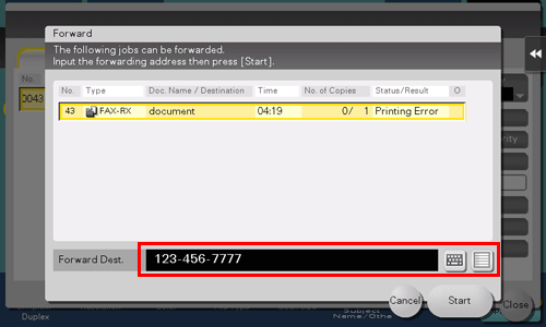 Select a job to be forwarded, specify the forwarding destination and also tap [OK].
