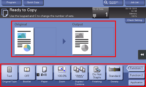 If desired, tap [Check Setting] before starting a copy, and check the setting.