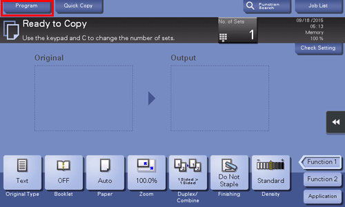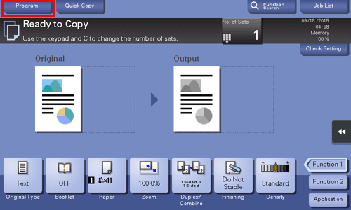 When you register a copy program, you can simply recall a combination of various copy settings from the main screen.
