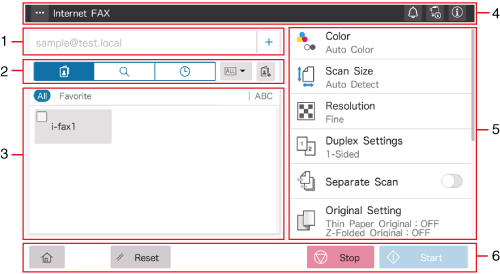 If you tap [Internet Fax] on the home screen, the main screen of Internet Fax is displayed.