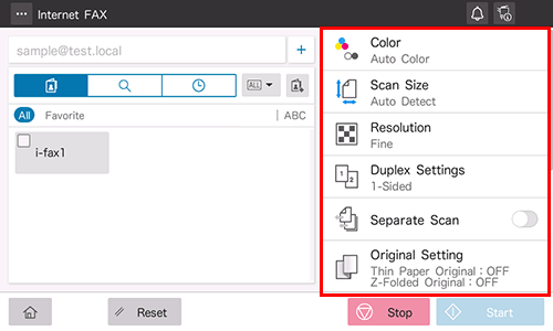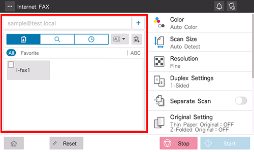 Using the Stop key enables you to stop scanning the original. A list of the currently stopped jobs is displayed. To stop transmission, select the target job from the list, and delete it.