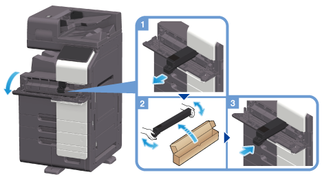 Do not force open the toner-related parts (e.g., toner cartridge, developing unit and Waste Toner Box). If toner tumbles from the toner bottle, take utmost care to avoid inhaling it or even getting skin contact.