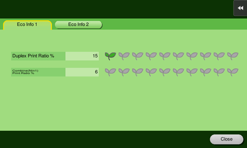Indicates the rate of 2-sided print jobs for all print jobs or the rate of page combination for the number of scanned original pages. You can check the ratio of paper saved.