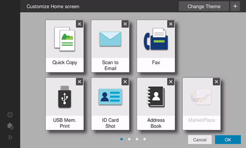 When the MarketPlace application is installed, you can change the function keys displayed on the home screen, for each login user.