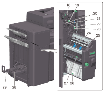 25 | Saddle Staple Cartridge 2 | Pull out this cartridge from the Saddle Stitcher when clearing a staple jam or replacing a saddle staple cartridge. |