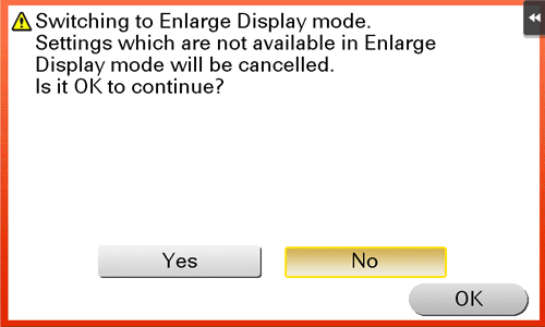If this machine is not operated in the Enlarge Display mode for a while, the Enlarge Display mode is canceled automatically. When necessary, you can display the screen to check whether to cancel the Enlarge Display mode.