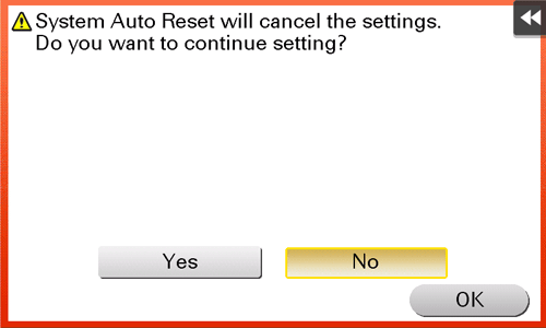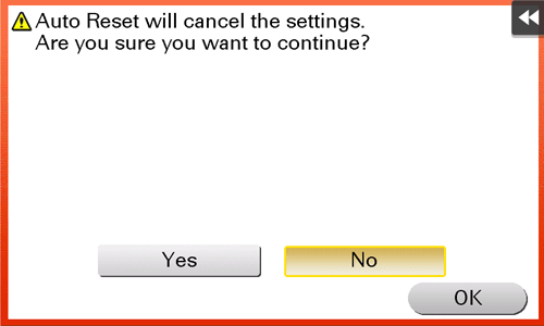 If this machine is not operated for a while, settings are reset automatically. When necessary, you can display the screen to check whether to reset settings.