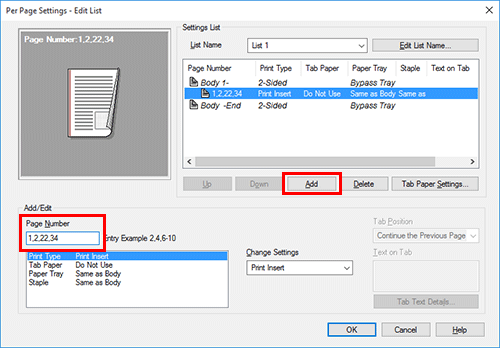 Click [Add] and enter the page number(s) for chapter cover(s) in [Page Number].