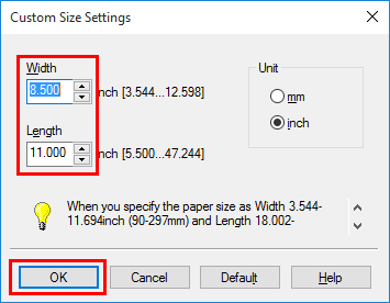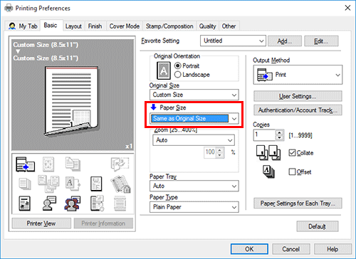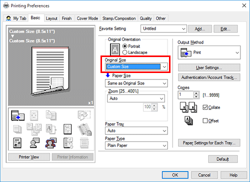 In [Original Size] in the [Basic] tab, select [Custom Size].