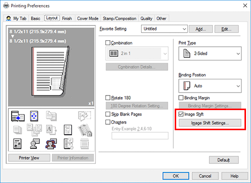 To enable image shift, select the [Image Shift] check box on the [Layout] tab and click [Image Shift Settings].