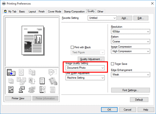 In [Image Quality Setting] in the [Quality] tab, select the type of document to print.