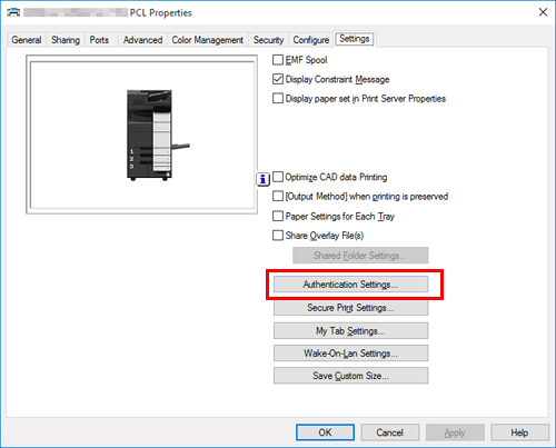 Q. How can I configure the setting to make the authentication window pop up so that a user does not forget to enter authentication information when data is to be printed?