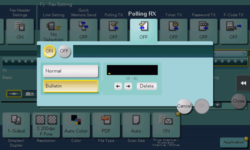 Select this option to receive a file stored in a Bulletin Board User Box. Enter the User Box number of the Bulletin Board User Box in the destination machine in which your desired file is stored.