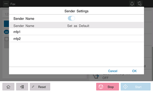 Changes on [Sender Settings] are only temporary. It is useful to specify frequently used sender names as defaults when registering sender names.