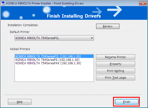 When you finish installing the printer driver, configure the default settings of the printer driver. For details, refer to Here.