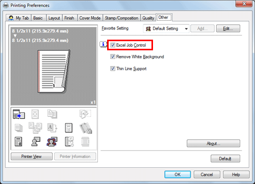 [Excel Job Control] is available only when the printer driver for Windows is used.