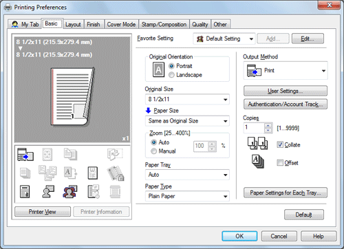 In the [Basic] tab, you can configure basic settings about paper or printing. Functions that are frequently used in normal printing are placed in this tab.