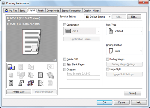 In the [Layout] tab, you can configure layout settings for printing. You can combine pages or adjust print positions.