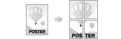 The original image is enlarged, divided, and printed on multiple sheets. When you join the printed sheets together, a large poster is created.