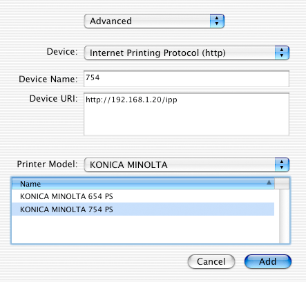 Set the [Device:] to [Internet Printing Protocol (http)].
