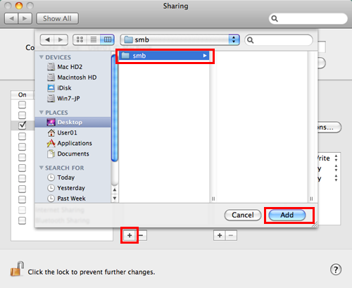 Click [+]. On the displayed window, select the created folder, then click [Add].