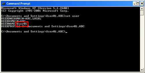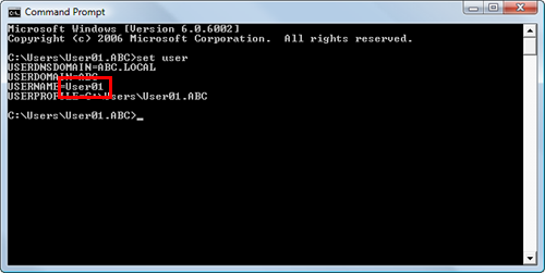 For domain users, type in "set user", and check the user name.